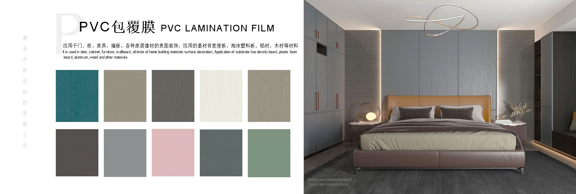 青島中澤信科技有限公司地處中國山東省青島市,致力于多種裝飾膜的研發和生產,所生產的熱轉印膜和包覆膜廣泛應用于多種家裝材料如建材、家具、裝飾框等。本公司擁有60多名專業工人,10000平米標準廠房,20年印刷行業經驗,15年熱轉印行業經驗,配備8套8色印刷生產線,采用韓國技術以及環保級原材料具備,ISO認證。工廠距離青島國際機場和青島港不足一小時車距這些都是我公司能為全球客戶提供高質量產品以及維持良好合作的重要因素。